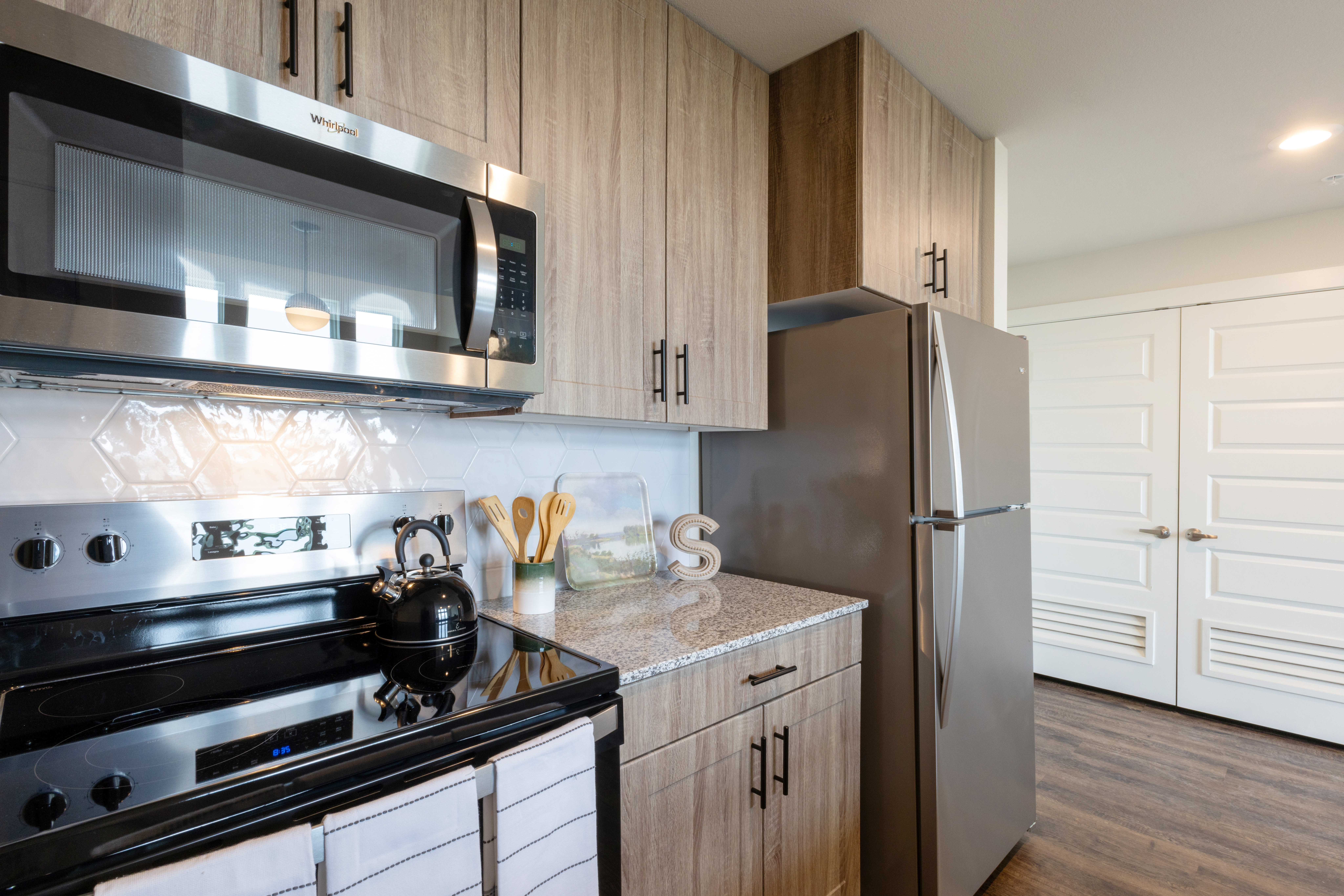 Units feature high-efficiency appliances and lighting, solid surface counters and flooring, and are National Green Building Certified.