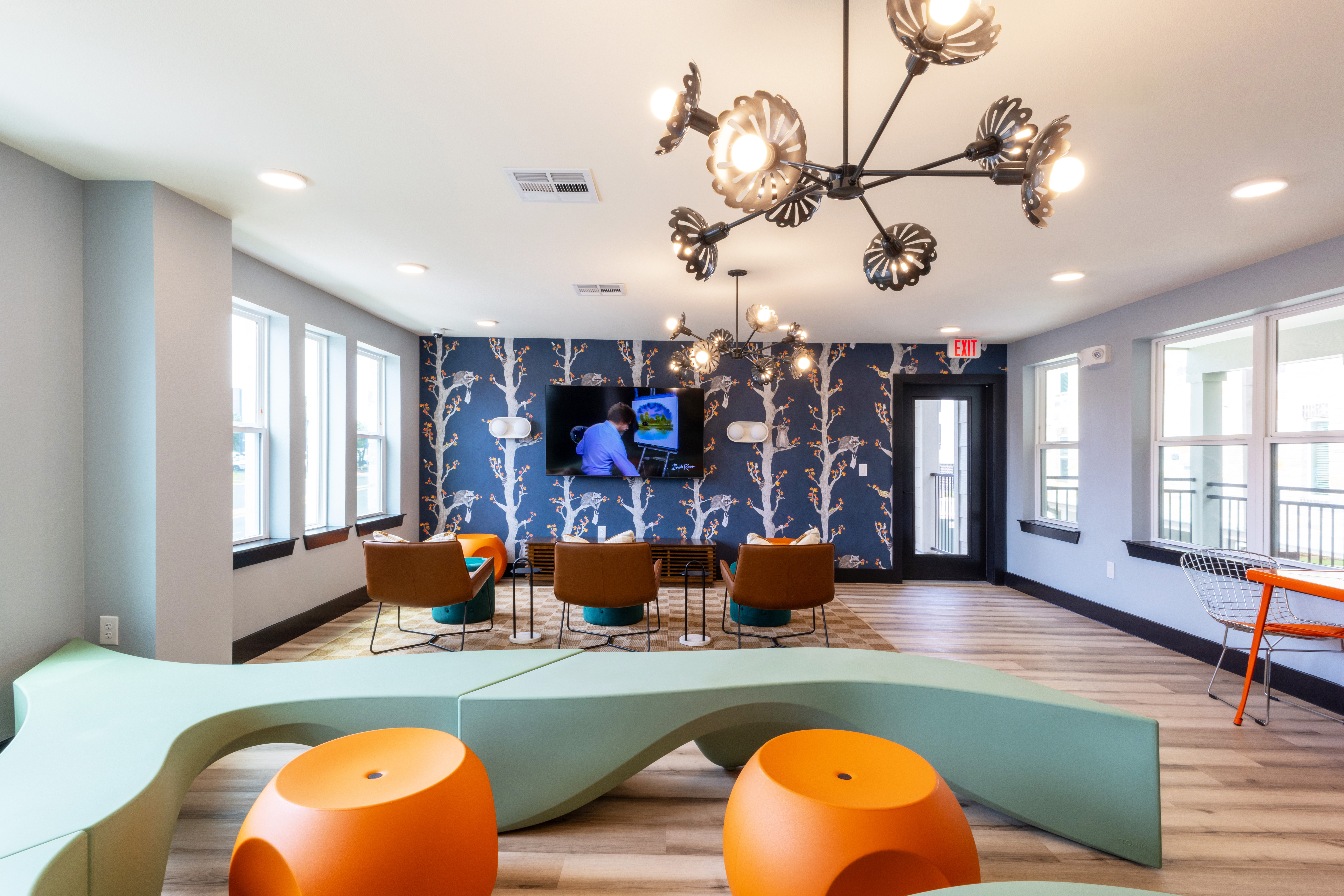 Community amenities include a fully furnished clubhouse with community room, swimming pool, business center, leasing center, fitness center, and bicycle parking.